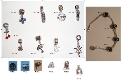 Pulseira com quatro peças tipo "Pandora". Peças metálicas com rosca compatíveis com pulseiras "Pandora" 12,5 mimos.